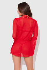 Created by Chinese designers in their California studio, this striking three-piece lingerie set blends tradition with sensual modern flair. The sheer red mesh robe features flowing sleeves and is trimmed in rich satin jacquard adorned with dragon motifs, symbolizing strength and allure. The matching triangle bra and g-string offer a seductive silhouette, crafted from soft stretch mesh that hugs your curves in all the right places.