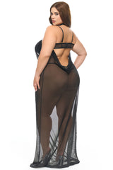 You needed lingerie to match your main character energy, and you've found her. The Tory Sheer Plus Size Gown stuns with its dramatic neckline, dipping to reveal glam vinyl cups. The plunging back makes you irresistible as you walk away. Consider this an absolute essential for your that girl wardrobe.