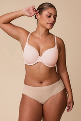 Slip into seamless comfort and sculpting support with our Bea T-Shirt Bra. Designed with our signature silky-soft microfiber fabric, this everyday essential features lightly padded cups and underwire support that provides a smooth, natural lift under even the most form-fitting outfits. With fully adjustable straps and a back hook-and-eye closure, the Bea Bra offers a customised fit for all-day ease. Its rose shade is thoughtfully chosen to blend beautifully with medium to deep skin tones, making it the ideal beige bra for women of color. Perfect under tees, dresses, and blouses, this is the bra your top drawer has been waiting for.
