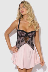 The Jocelyn Babydoll Skirt Set, featuring a delicate lace bodice and supportive underwire cups that gently lift and shape your bust for an irresistibly framed décolletage.