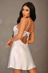 Slip into the ethereal beauty of the Celine Satin Chemise and Panty Set. A silky bridal-inspired dream designed to enchant. Featuring delicate lace cups and an open lace panel beneath the bust, this chemise caresses the skin with its ultra-soft satin finish. The flattering bias-cut flows effortlessly, skimming your curves in all the right places.