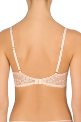 Features: innovative molded galloon lace, underwire, j-hook slide, hook and eye closure, adjustable straps