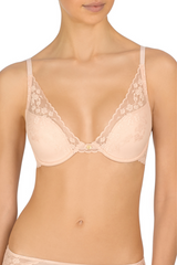 Utilizing ultralight stretch foam, the Cherry Blossom Contour Underwire Bra offers a beautiful, feminine touch to your natural shape. The built-up platform enhances the plunging effect and creates a dramatic neckline while providing excellent coverage. For larger sizes (36DD, 34-36DD, 32-34G), the lace backs are lined with mesh for added support. Scalloped edges at the backs, center gore, and neckline add a touch of elegance. With a J-hook slide, this bra can be converted to a racerback style at any height. Pair with the Cherry Blossom Girl Brief.