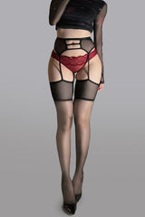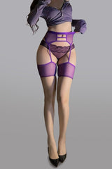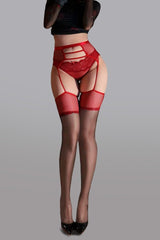 The matching garter belt adds an irresistible edge, complete with adjustable straps for a custom fit, while the sheer thigh-high stockings create a seamless, leg-lengthening effect. Finished with a delicate satin bow detail, this set is the perfect blend of fiery passion and elegant sophistication, made for nights when you want to feel utterly unforgettable.