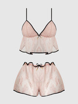 Jocelyn Satin & Lace Plus Size Trim Cami Set in Pink