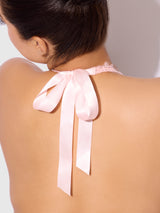 Features: functional ties, delicate lace, pearls