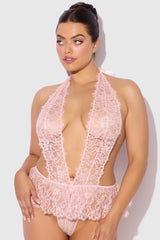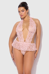 Jocelyn Lace & Pearl Plus Size Crotchless Teddy