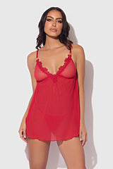 Ashley Alexiss Sheer Babydoll Set in Red