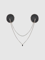 Turn up the heat with the Gemma Rhinestone & Leather Draped Pasties, a sultry combination of bold leather and dazzling rhinestones. Designed for those who love to make a statement, these pasties feature a black faux leather base trimmed with shimmering rhinestones for an edgy yet elegant touch. The stunning draped rhinestone chains add a sensual allure, making them perfect for boudoir looks, festival outfits, or daring lingerie ensembles.