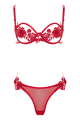 Experience the delicate touch of soft mesh and the allure of blooming roses with the Sydney Embroidered Lingerie Set. This captivating two-piece ensemble combines romance and daring elegance, featuring a sheer underwire bra embellished with detailed red rose appliqués alongside a matching low-rise thong decorated with embroidered floral lace. Adjustable straps provide a perfect fit, while the revealing cutouts add a hint of mystery. Ideal for a luxurious Valentine’s Day, an intimate anniversary surprise, or an indulgent treat, this red floral lingerie set transforms desire into reality.