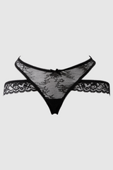 This seductive lace panty that blends daring detail with sensual elegance. Featuring delicate floral mesh, seductive hip-hugging straps, and a jaw-dropping open-back design that leaves little to the imagination. The double-strap waistband and center O-ring create an unforgettable silhouette, while the scalloped lace front adds a soft, feminine contrast.