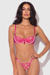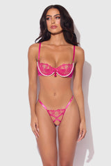 Features: underwire cups, strappy details, lace, embroidered design