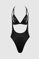 The Yasmine Shimmer Teddy Lingerie Set embodies bold elegance and captivating allure. Crafted from shimmering stretch mesh that gracefully catches the light, this alluring two-piece features striking cut-outs, gold o-ring accents, and high-cut straps that perfectly frame the hips. Designed for the confident woman, it blends seductive charm with refined sophistication. Ideal for a passionate evening, an intimate boudoir session, or celebrating your own confidence, this black shimmer teddy is the ultimate statement of luxury and sensuality.