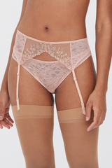 Add a touch of romance to your lingerie collection with the beautiful Paradise Garter Belt, elegantly adorned with embroidered floral lace. Designed to sit comfortably at the waist, the lace front seamlessly transitions into lightweight embroidery for a delicate, ethereal look. The center panels form a flattering V shape that enhances coverage while highlighting your natural curves.