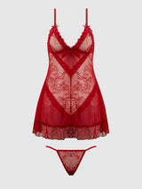 This alluring babydoll set features a gently flared silhouette and a feminine ruffle hem that enhances your natural curves with a matching sheer lace g-string, making it the perfect blend of playful romance and irresistible sensuality. Ideal for a Valentine's night full of passion, this romantic babydoll lingerie set promises to elevate your intimate wardrobe with a touch of sophisticated allure.