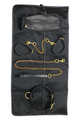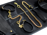 Stimulate your senses with the exquisite Bondage Starter Kit, crafted from genuine saddlery leather and premium brass fittings in a luxurious gold plating. Featuring all the elements you need for a thrilling evening of fantasy and desire.
