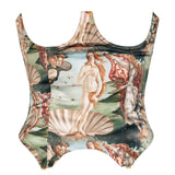 Inspired by the painting of Sandro Botticelli, this gorgeous underbust corset portrays the goddess of love and beauty arriving on Earth. A true masterpiece, made to create the perfect hourglass silhouette.