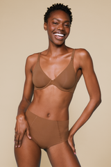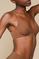 The Bea Unlined Bra crafted from our signature silky-soft microfiber fabric is the everyday lingerie essential designed for unmatched comfort, natural shaping, and a barely-there feel. This ultra-lightweight brown bra features fully adjustable straps and a supportive underwire that lifts without adding volume, making it ideal for women who prefer breathable, wire support bras with a smooth finish.