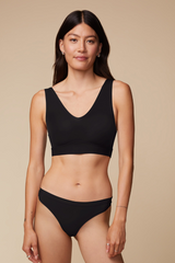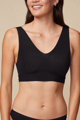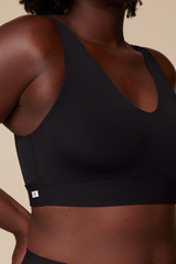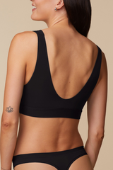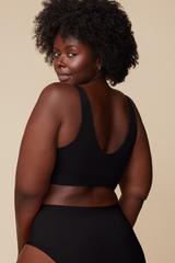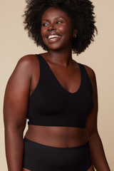 Effortlessly elegant and designed for all day comfort, the Bliss Bralette in Black is your go-to wireless bra for a smooth, seamless look. Crafted with our signature silky-soft microfiber fabric, this everyday bralette features a flattering scoop neckline, lightly molded cups for natural shaping, and a wide supportive under band. The wide-set fully offers a personalised fit while the pullover design makes it easy to wear under anything, from t-shirts to low back dresses. Whether you are lounging at home or layering under workwear, this wireless beige bralette is the perfect blend of functionality and feminine ease.
