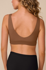 Effortlessly elegant and designed for all day comfort, the Bliss Bralette in Brown is your go-to wireless bra for a smooth, seamless look. Crafted with our signature silky-soft microfiber fabric, this everyday bralette features a flattering scoop neckline, lightly molded cups for natural shaping, and a wide supportive under band. The wide-set fully offers a personalised fit while the pullover design makes it easy to wear under anything, from t-shirts to low back dresses. Whether you are lounging at home or layering under workwear, this wireless brown bralette is the perfect blend of functionality and feminine ease.