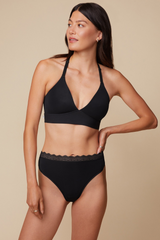 A timeless fusion of elegance and comfort, the Bliss Lace Halterneck Bralette in Black is designed for the woman who craves soft support and striking detail. Made from our signature silky-soft microfiber, this wireless bralette features a deep plunge neckline and stunning lace halterneck straps that add a sophisticated edge to everyday lingerie. The buttery-smooth band ensures a barely-there feel while the sleek silhouette disappears under clothing, making it a must-have for seamless styling.