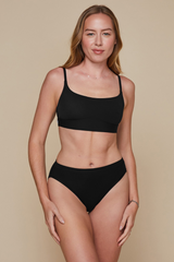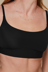 The Bliss Scoop Bralette in this Black color is crafted from our signature silky-soft microfiber fabric, offering a barely-there feel while providing all-day support. Designed with a flattering scoop neckline, wireless cups, and a smooth, seamless finish, this everyday bralette is your go-to for effortless luxury. Fully adjustable straps and a wide under band offer a customizable fit that moves with you. Whether worn alone or under your favorite tee, this versatile bralette is perfect for lounging, layering, or low-impact activities.